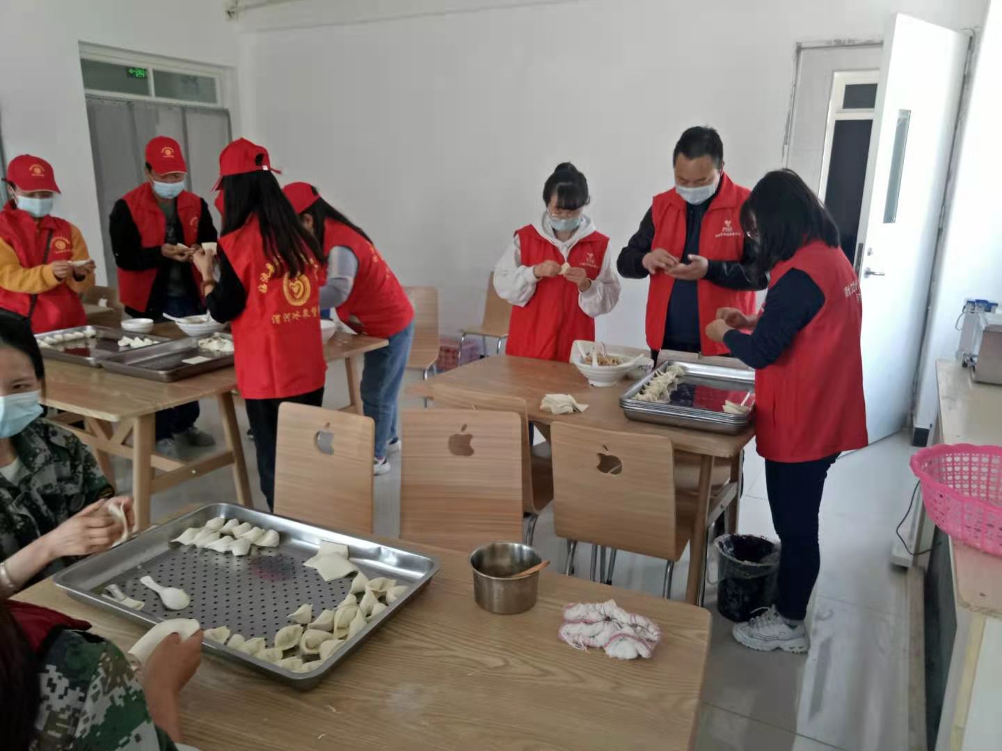活動(dòng)中,臨洮血漿站志愿者與療養(yǎng)中心的職工們一起為中心殘疾人士包餃子、嘮家常,從調(diào)陷到和面,從搟皮到包餃子,志愿者們分工協(xié)作,配合默契,忙的不亦樂(lè)乎,不時(shí)傳出陣陣爽朗的笑聲。志愿者們還為療養(yǎng)中心的殘疾人準(zhǔn)備了消毒劑、消殺洗衣液及營(yíng)養(yǎng)品,并為她們送去暖暖的祝福。臨近中午,一鍋接一鍋五顏六色、各式各樣、熱氣騰騰的餃子端上桌,大家吃著餃子,臉上洋溢著幸福的笑容。