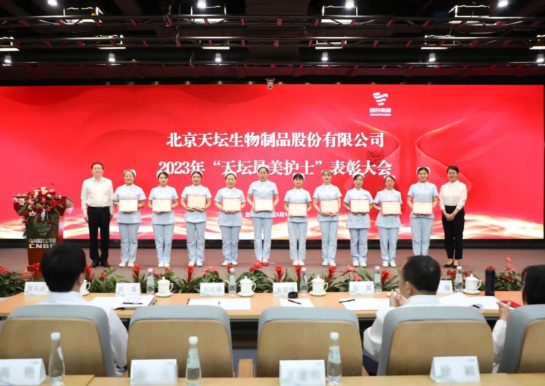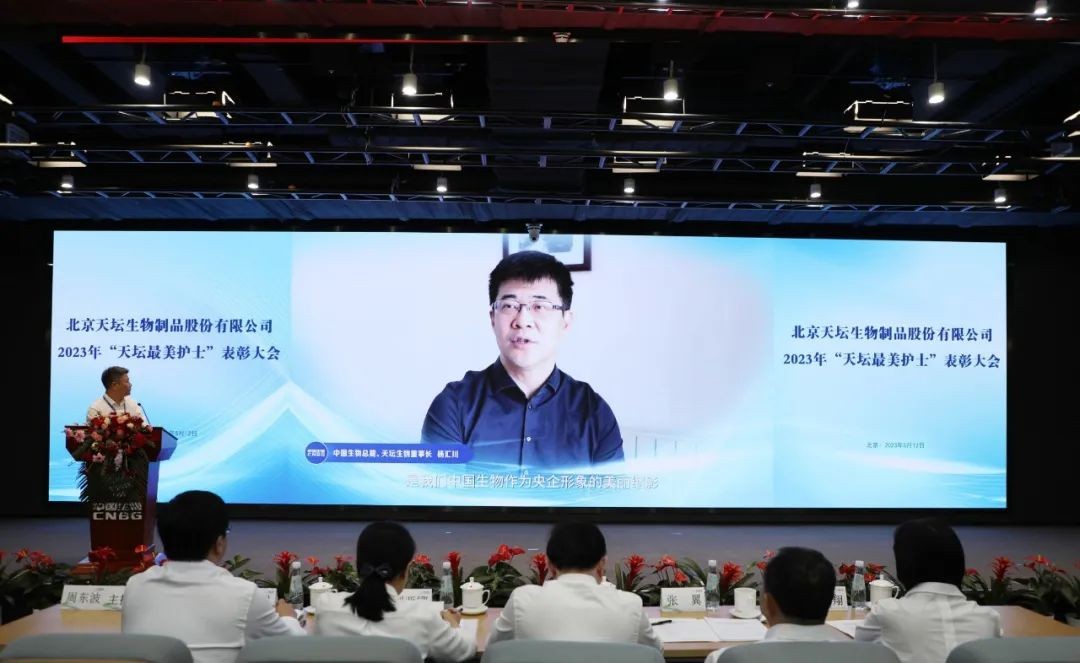 5月12日,2023年“天壇最美護士”表彰大會在北京舉行。中國生物黨委書記朱京津,天壇生物總經(jīng)理付道興,黨委書記劉亞娜,副總經(jīng)理何彥林,副總經(jīng)理兼財務(wù)總監(jiān)張翼,紀委書記高嵩出席會議。天壇生物常務(wù)副總經(jīng)理周東波主持會議。